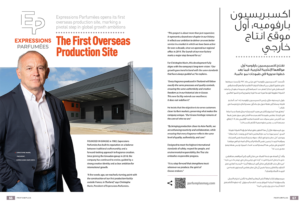 “A few weeks ago, we reached a turning point with the construction of our first production facility outside France, in Thailand,” says Christophe Marin, President of Expressions Parfumées.